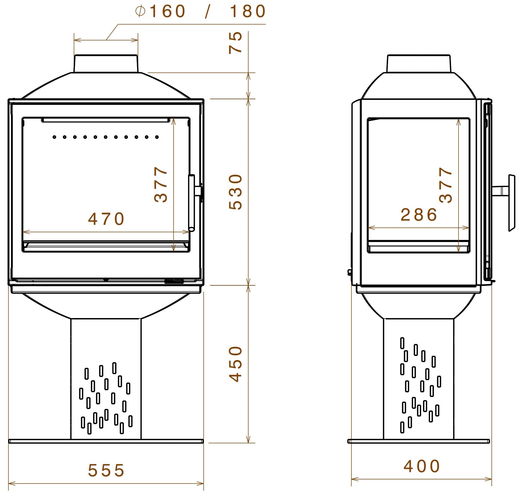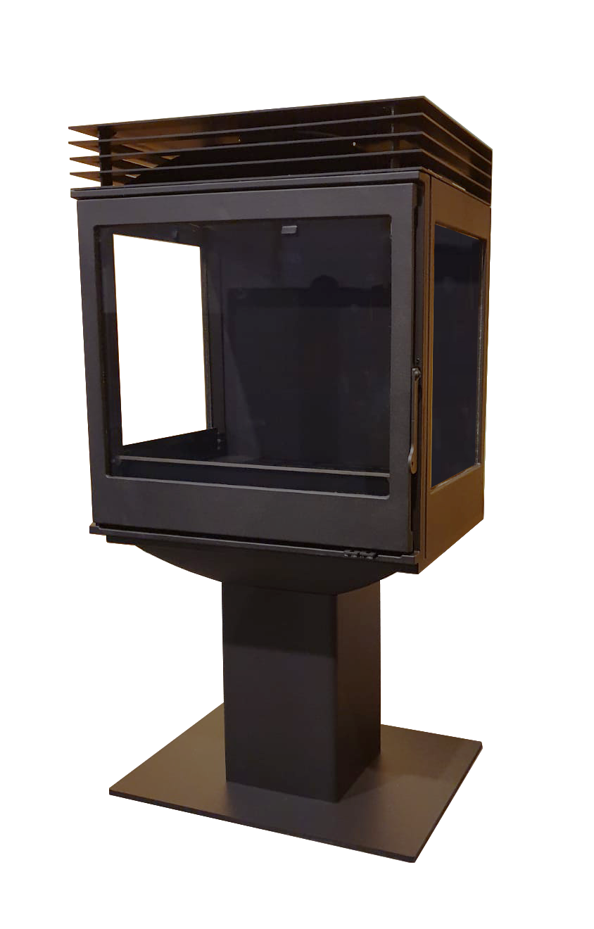 Den unika designen med tre glas – ett frontglas och två sidoglas – erbjuder panoramavy över lågorna och skapar en varm, inbjudande atmosfär från flera vinklar.
