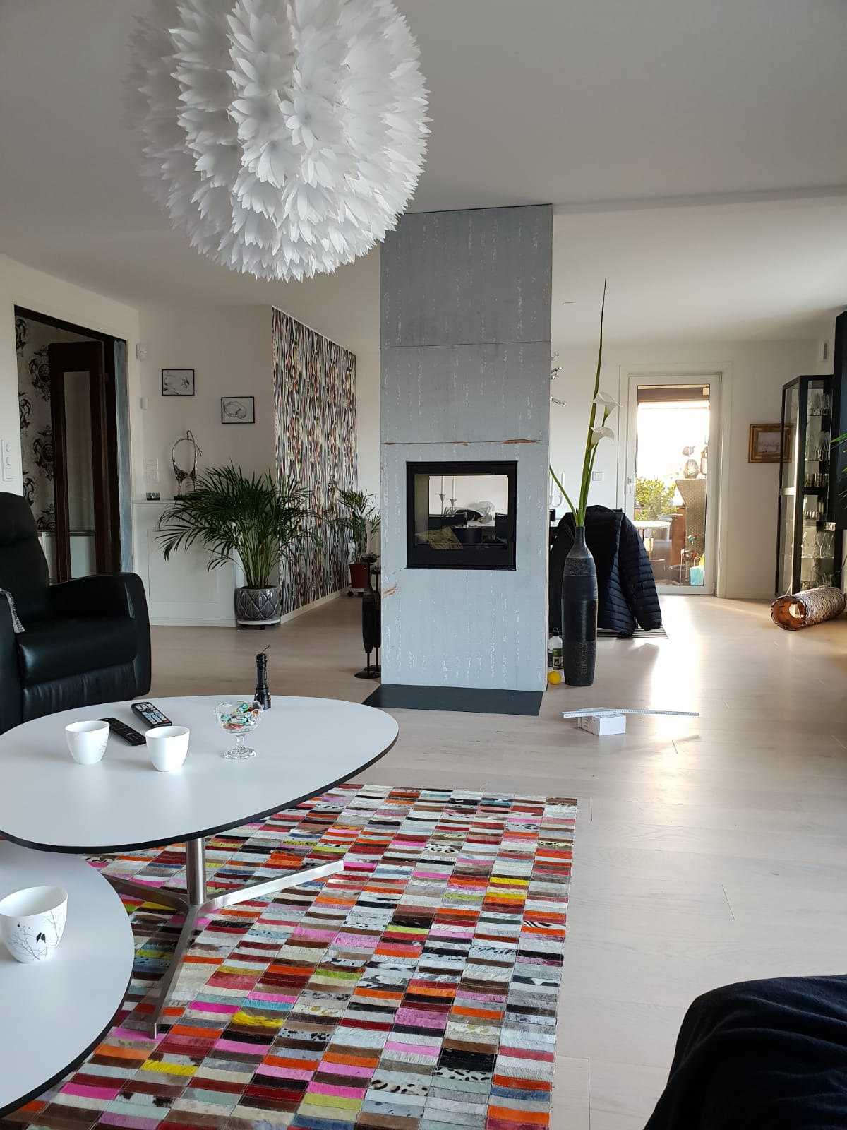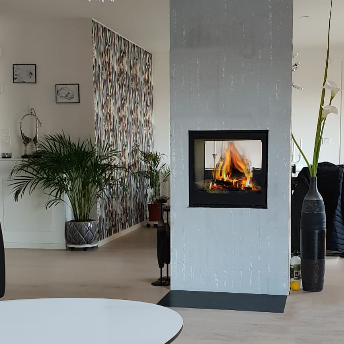 Den genomgående konstruktionen gör den perfekt för öppna planlösningar, där man vill låta elden binda samman två utrymmen – exempelvis mellan vardagsrum och matsal, eller i en större öppen planlösning.