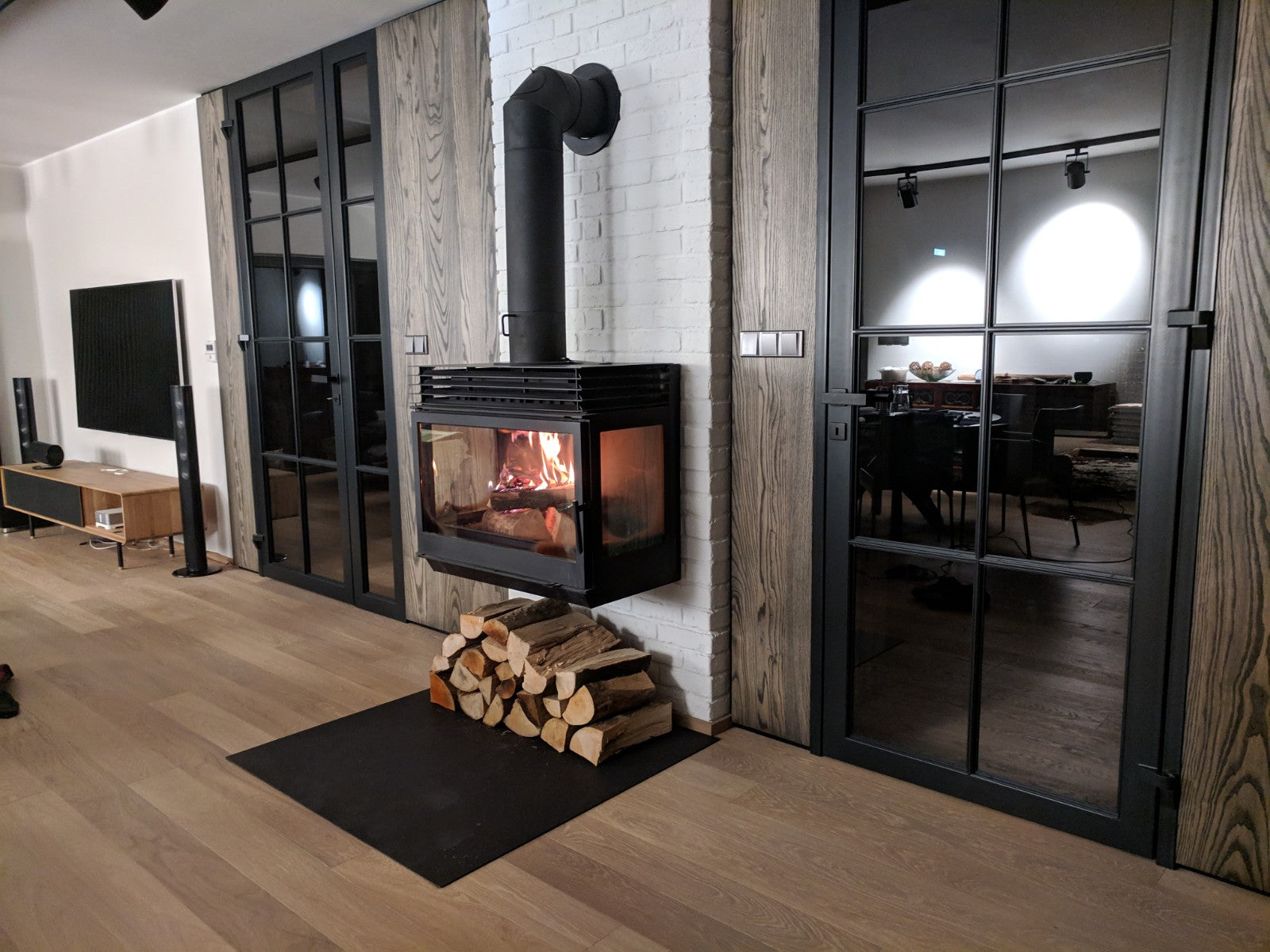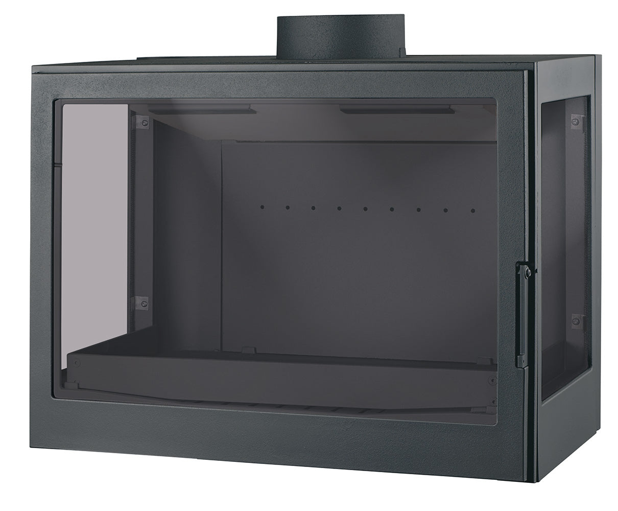 LCI 7 WALL GFLR Är en vägghängd kamin tillverkad i gjutjärn med ett frontglas, två sidoglas och platt topp. Gjutjärn erbjuder fantastisk värmelagring och når betydligt högre temperaturer än tex. plåt. Tack vare gjutjärnets egenskaper erbjuder alla LCI modeller effektiv uppvärming av ert hem. Alla LCI modeller har valmöjlighet kring glas och färg. Välj antal glas 1-4st och färg svart eller grå.