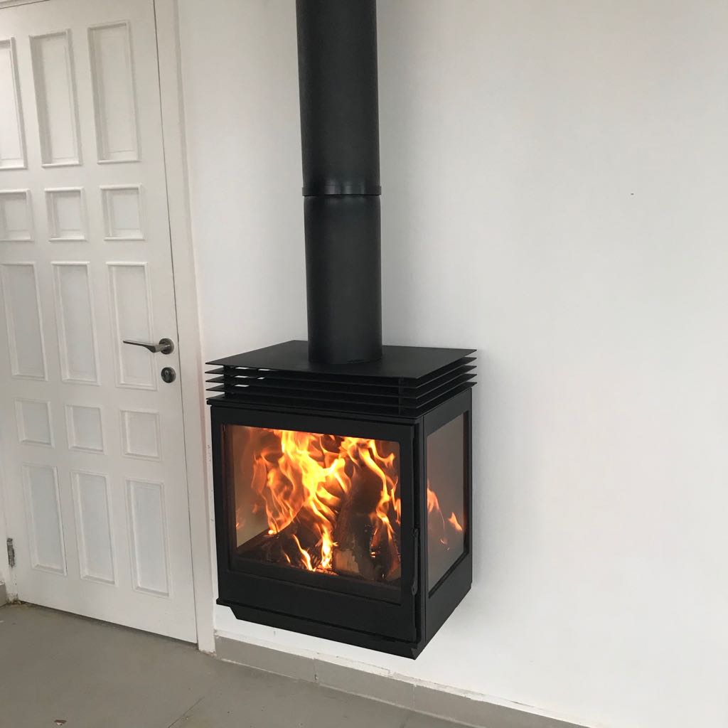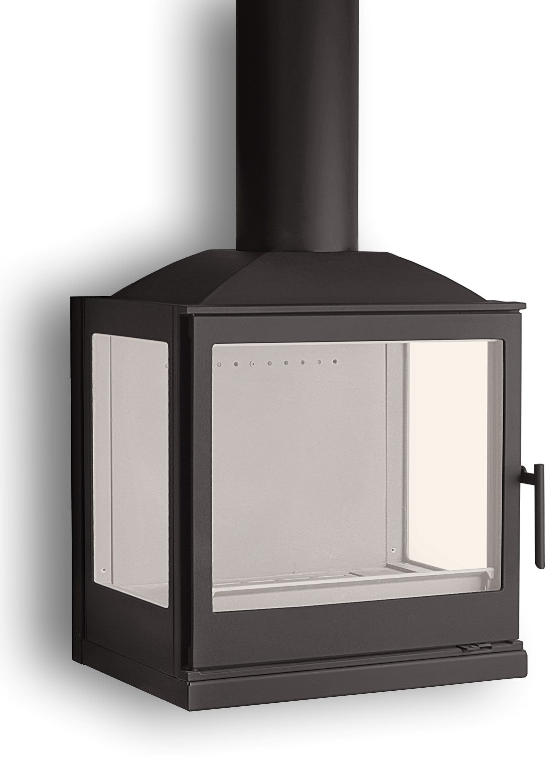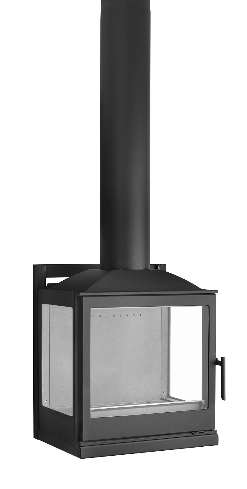 Den flytande konstruktionen ger kaminen ett arkitektoniskt lyft och skapar en lätt, svävande känsla på väggen, samtidigt som gjutjärnets kraftfulla egenskaper sprider en jämn och behaglig värme.